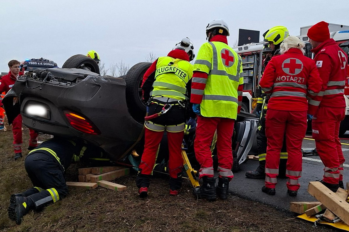 Der Lenker wurde im Fahrzeug eingeklemmt und musste durch die Freiwillige Feuerwehr Ybbs an der Donau befreit werden. Er wurde mit vermutlich schweren Verletzungen mit dem Notarzthubschrauber in das Universitätsklinikum St. Pölten geflogen. Die beiden Mitfahrer wurden mit leichten Verletzungen durch den Rettungsdienst in das Landesklinikum Amstetten verbracht.