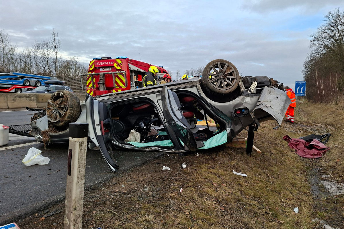 A1 Erlauf – Drei Verletzte bei schwerem Unfall mit Überschlag