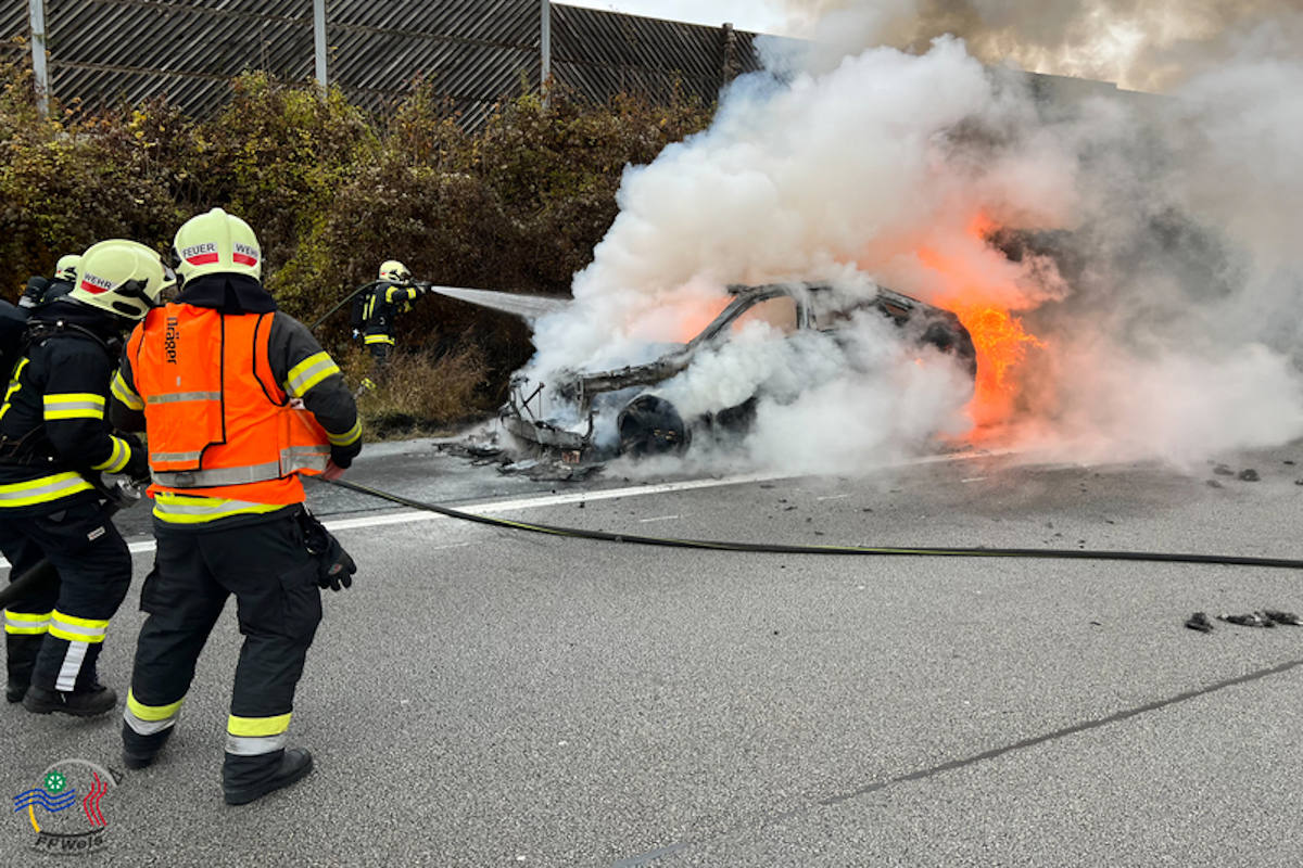 Brennendes Fahrzeug auf der A25 bei Wels (Bildquelle: FF Wels)