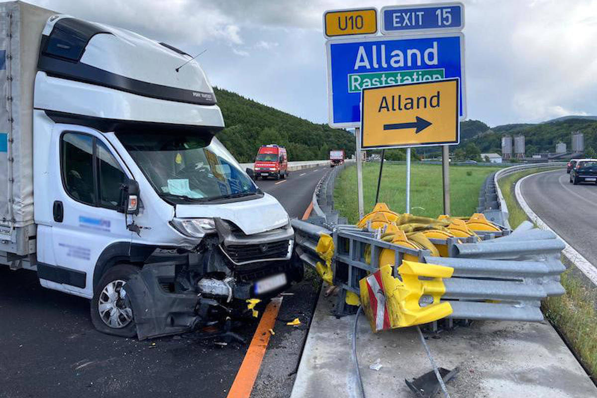 Am 28. August war ein Kleintransporter auf der Aussenringautobahn in den Aufpralldämpfer der Abfahrtsrampe, Anschlussstelle Alland, gekracht.