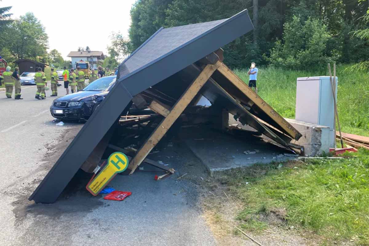 Ein, in dieser Bushaltestelle aufhältiger, 51-jähriger Einheimischer wurde vom Fahrzeug sowie von Teilen der einstürzenden Bushaltestelle unbestimmten Grades verletzt und nach der Erstversorgung mit dem Rettungshubschrauber in das Universitätsklinikum Salzburg gebracht.
