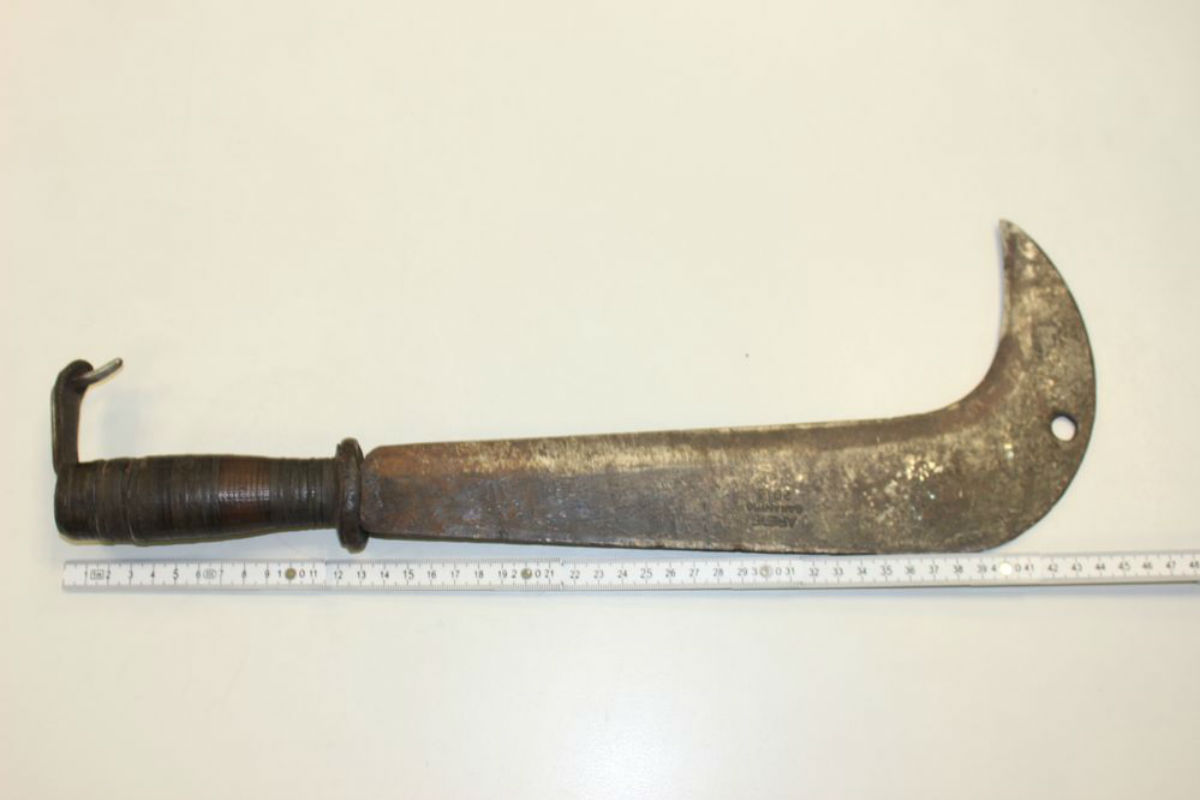 Die Zeugen schildern, dass der Täter ca. 6 – 7 Mal versucht hatte, das Opfer mit der Machete sowohl im Bereich der Oberschenkel als auch im Gesichtsbereich zu attackieren.