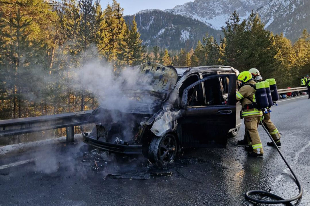 Am Montag, 19. Jänner 2026, geriet auf der Fernpassstraße bei Biberwier ein Pkw während der Fahrt in Brand. Die fünf Insassen konnten das Fahrzeug unverletzt verlassen. Am Auto entstand erheblicher Sachschaden.