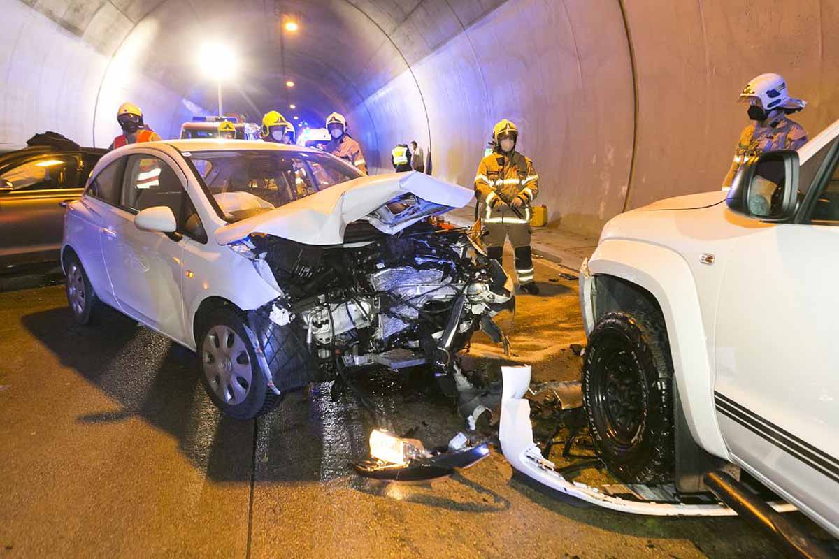 Zu diesem Zeitpunkt fanden Wartungsarbeiten in der Weströhre des Tunnels statt, weshalb dort ein Gegenverkehrsbereich eingerichtet und die Geschwindigkeit auf 60 km/h reduziert wurde.