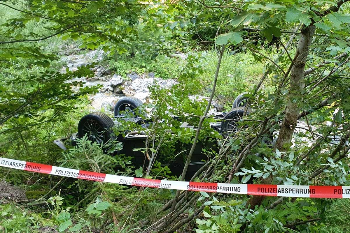 Am 13.08.2021 um 07.45 Uhr wurde bei der Polizei angezeigt, dass in Eben aA in einem Bachbett neben dem Wanderweg Richtung Weißenbachalm ein PKW auf dem Dach liegt.