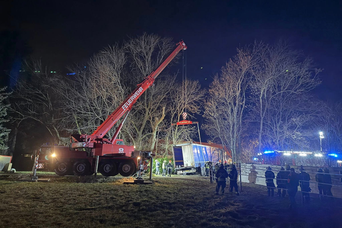 Nach der Entladung wurde der Sattelauflieger mit dem Autokran angehoben und wieder gerade ausgerichtet. Anschließend konnte der Lenker das beschädigte Gespann selbstständig über die Brücke fahren und an einer sicheren Stelle abstellen.