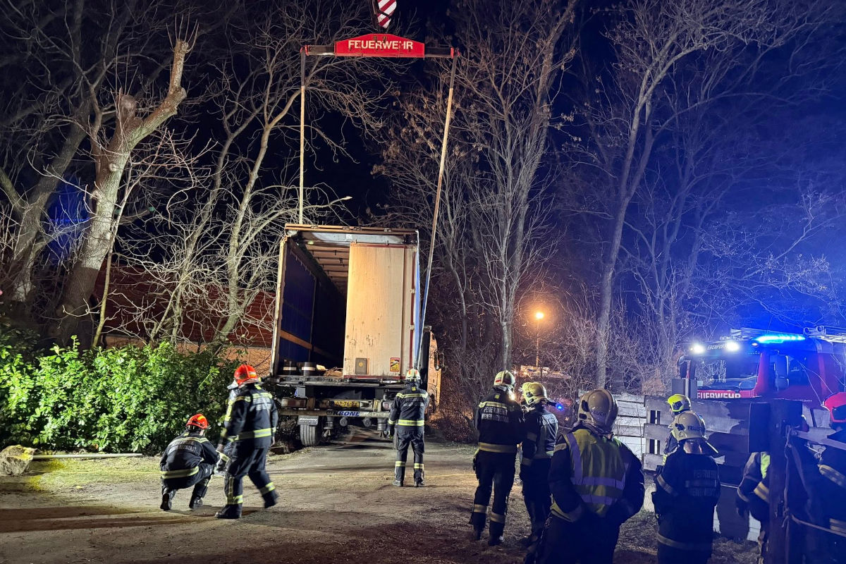 Am Donnerstag, 12. Februar 2026 kam es in Ebenfurth zu einer aufwendigen Lkw-Bergung. Ein mit 23 Tonnen Streusalz beladener Sattelzug fuhr sich in einer schmalen Gasse fest und musste von der Feuerwehr mit Kranfahrzeug geborgen werden.