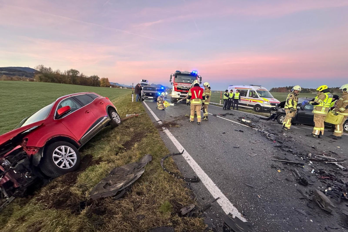 Heute Morgen, 5. November 2025, kam es auf der B1 zwischen Eugendorf und Henndorf zu einem Unfall zwischen zwei Autos. Beide Lenker wurden verletzt und ins Krankenhaus gebracht.