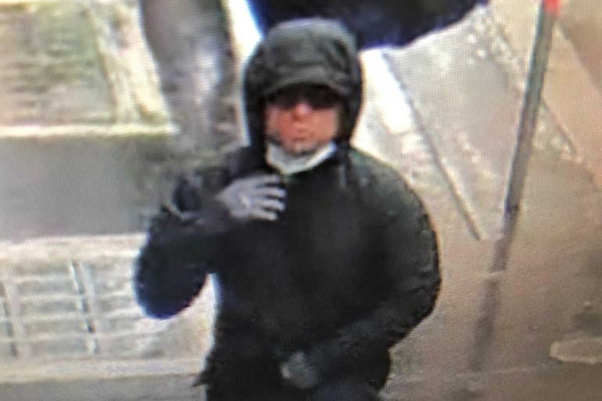 - 2.männlich, ca. 180 cm groß, grauer Kapuzenhoodie, Kappe, Mund-Arsen-Schutz, Schraubendreher, Sprache: Russisch