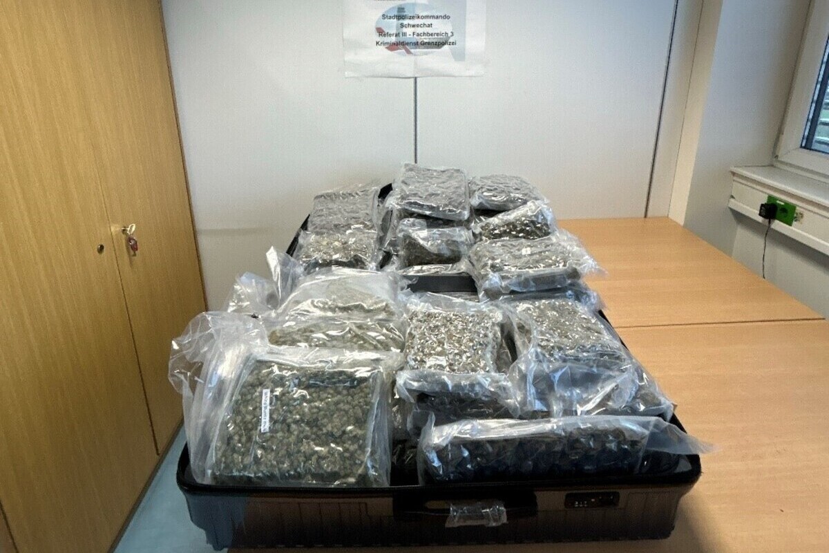 Bei Gepäckskontrollen am Flughafen Wien-Schwechat in den Morgenstunden des 2. April 2025 fanden Bedienstete des Stadtpolizeikommandos Schwechat, Fachbereich Kriminaldienst Grenzpolizei, einen Koffer gefüllt mit 40 Paketen Cannabiskraut auf.