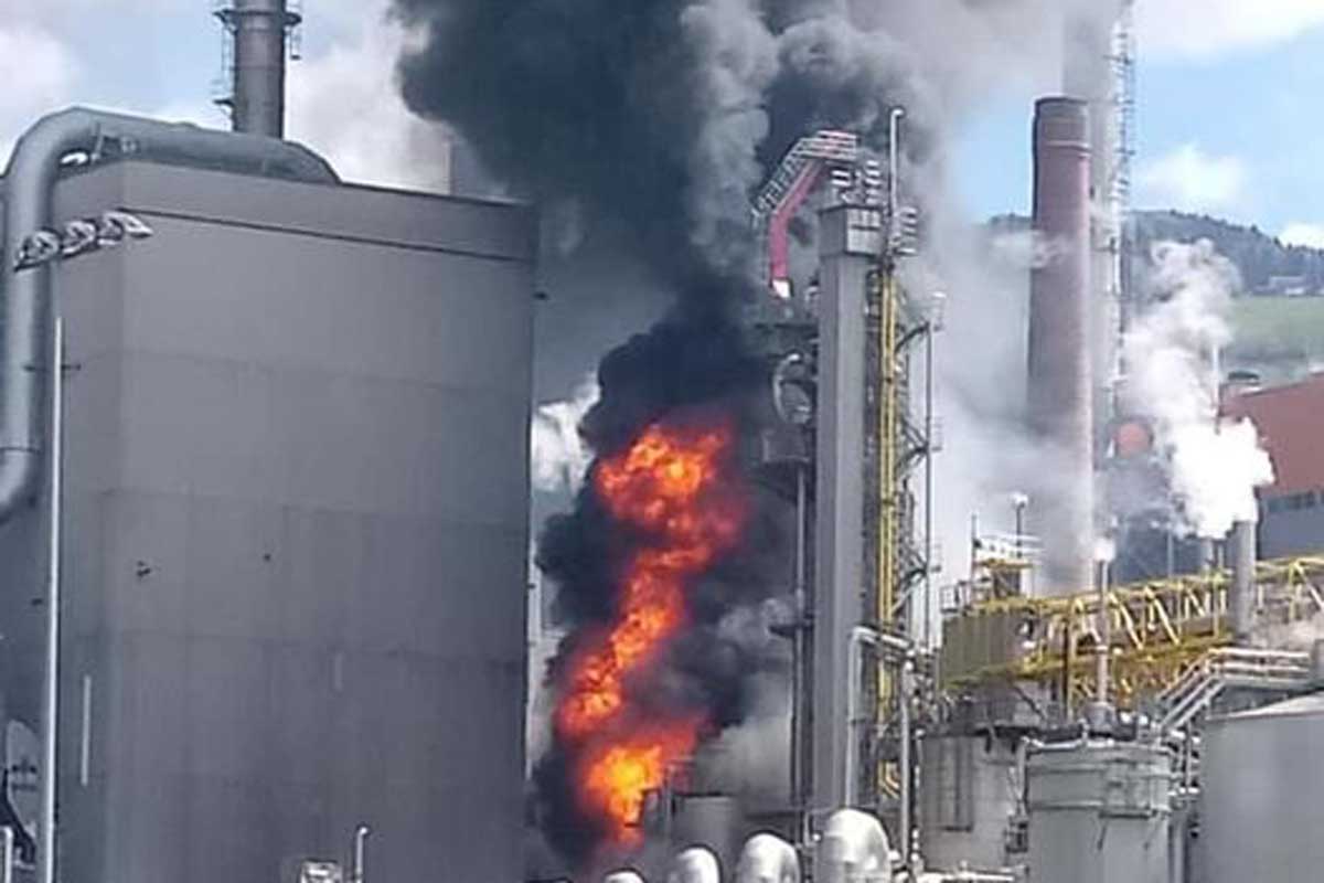 Gestern kam es in einem Zellstoffwerk in Frantschach in einem sogenannten "Druckdiffuseur" zu einer Überhitzung und in der Folge zu einem Brand und einer Explosion (Bildquelle: Marktgemeinde Frantschach-St. Gertraud)