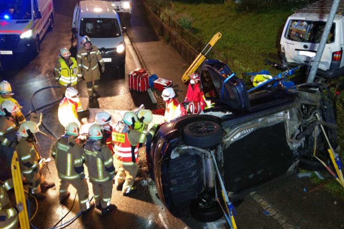 Der Lenker, welcher zum Unfallszeitpunkt nicht alkoholisiert war, erlitt dabei schwere Verletzungen und musste von der Feuerwehr aus dem Unfallfahrzeug mittels Bergeschere befreit werden.
