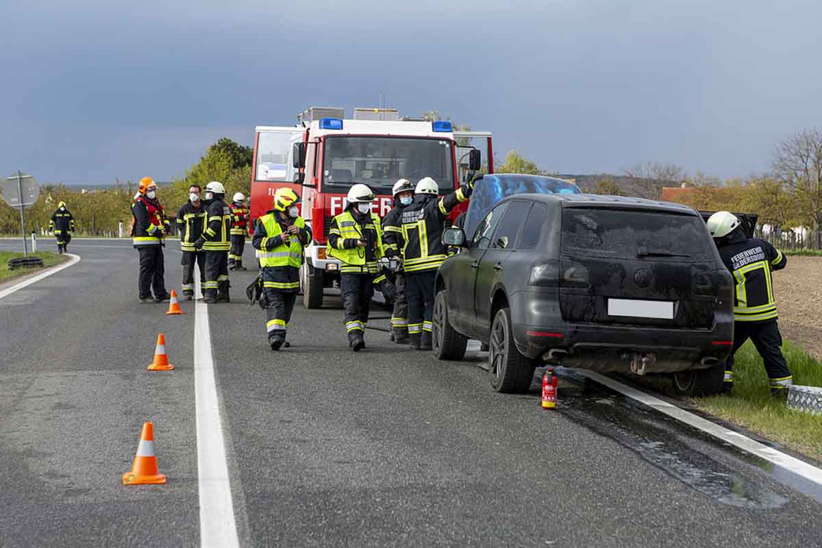 Am Nachmittag des 30. April bemerkte der Lenker eines SUV Rauch aus dem Motorraum seines PKW. Unverzüglich stellte dieser das Fahrzeug an der S5 Abfahrt bei Theiß/Gedersdorf ab, wählte den Feuerwehrnotruf 122 und versuchte den Entstehungsbrand selbst abzulöschen.