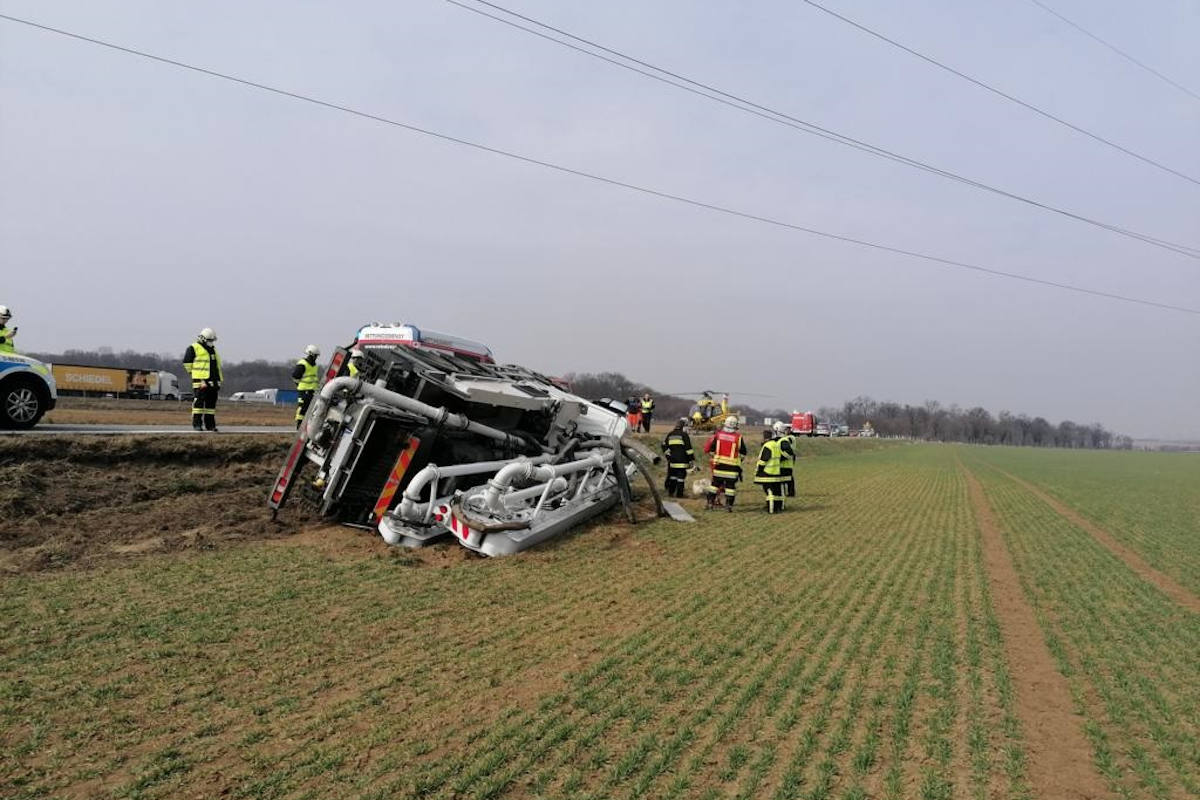 Aus bislang unbekannter Ursache sei der Lkw in das rechte Fahrbahnbankett gekommen und in weiterer Folge nach rechts über eine einen Meter hohe Böschung gestürzt. Der Lenker konnte sich nicht selbständig aus dem Fahrzeug befreien. Ersthelfer verbrachten ihn aus dem Fahrzeug, woraufhin er von den eingetroffenen Rettungskräften medizinisch versorgt wurde. Er erlitt Verletzungen schweren Grades und wurde mit dem Notarzthubschrauber Christophorus 3 in das Wiener Donauspital geflogen.