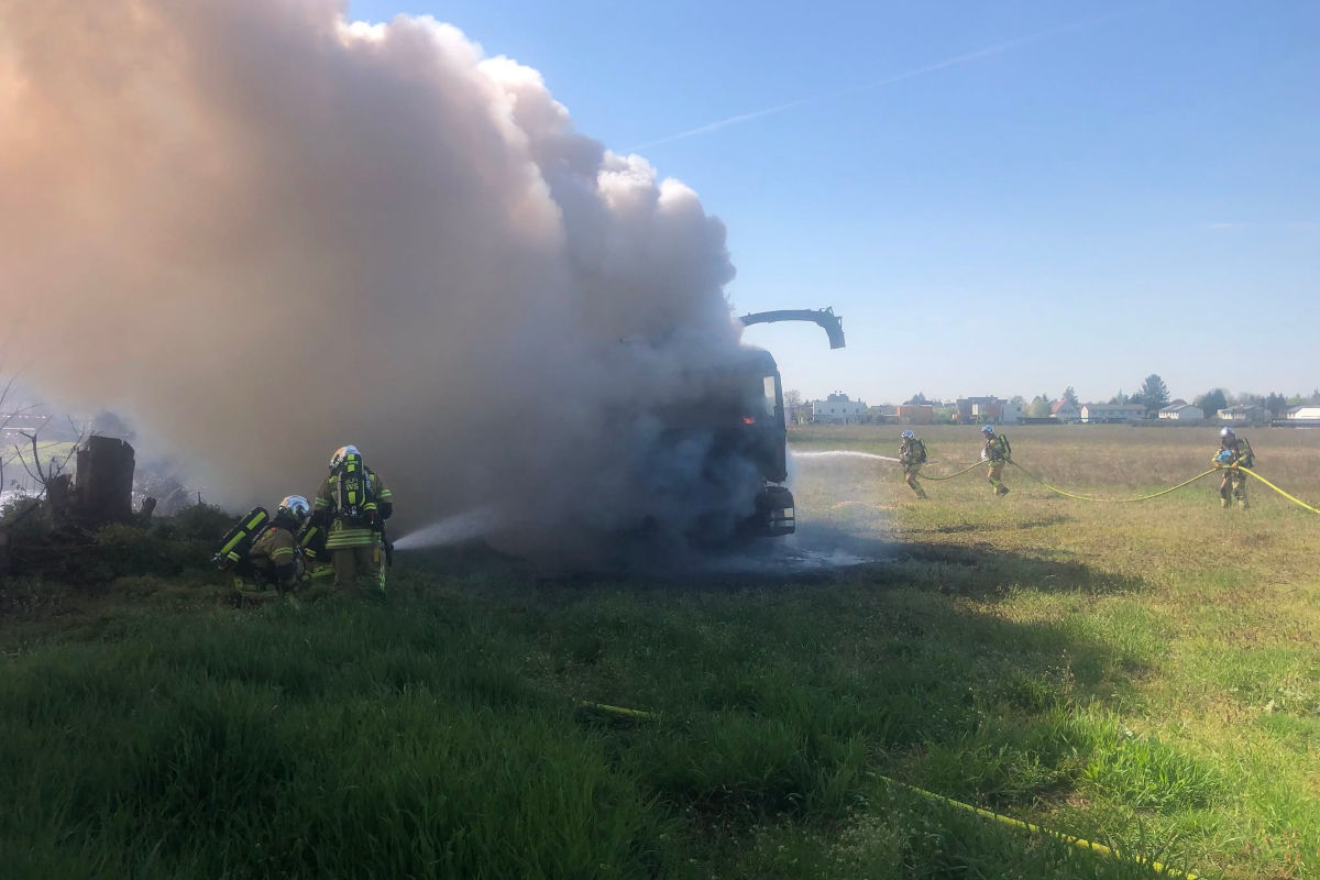 Das Arbeitsgerät war auf einem Lkw aufgebaut gewesen und dürfte nach ersten Erkenntnissen aufgrund eines technischen Defekts in Brand geraten sein. Nachdem Löschversuche des Lenkers mit einem Feuerlöscher fehlschlugen, alarmierte dieser die Feuerwehr.