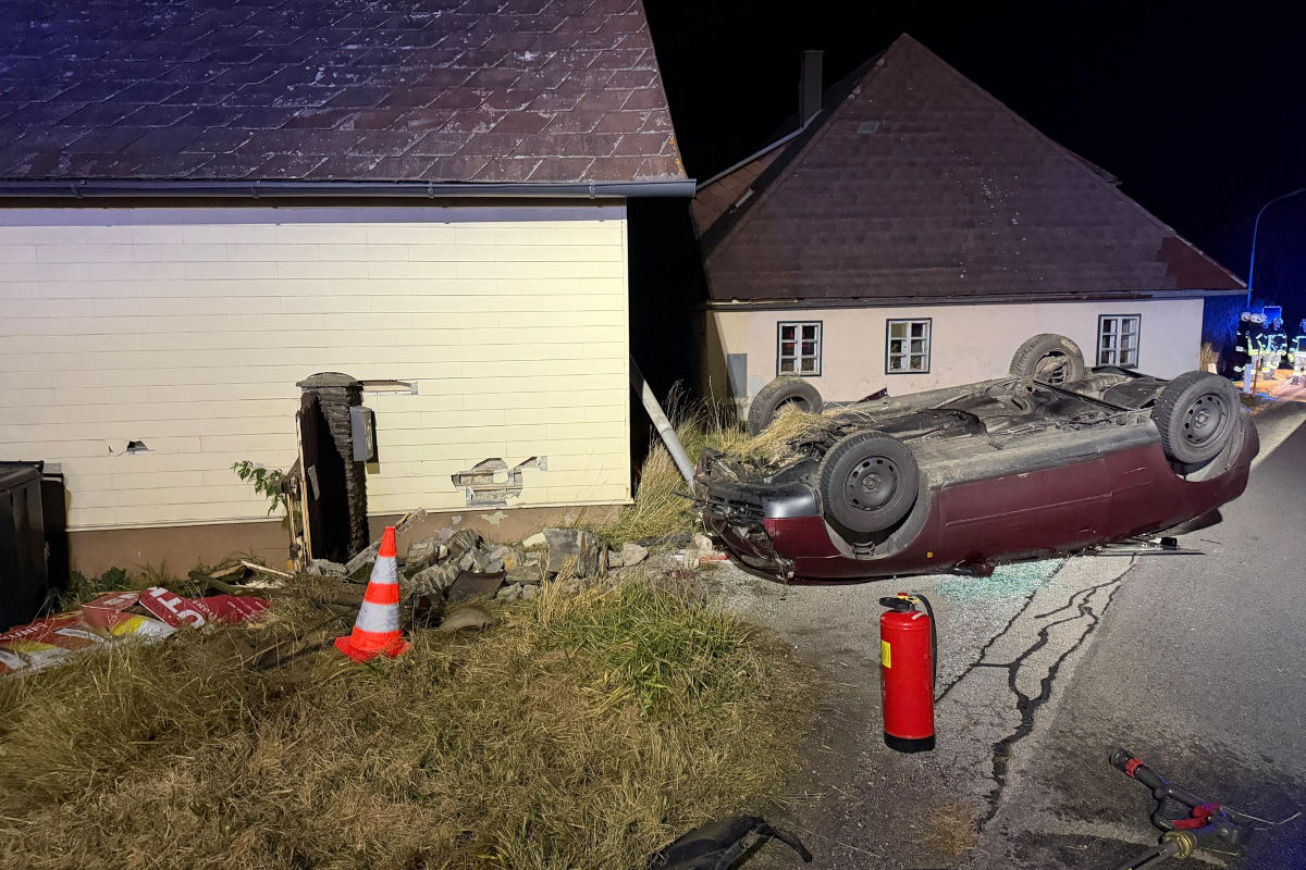 Großpertholz NÖ – Auto überschlägt sich und landet am Dach