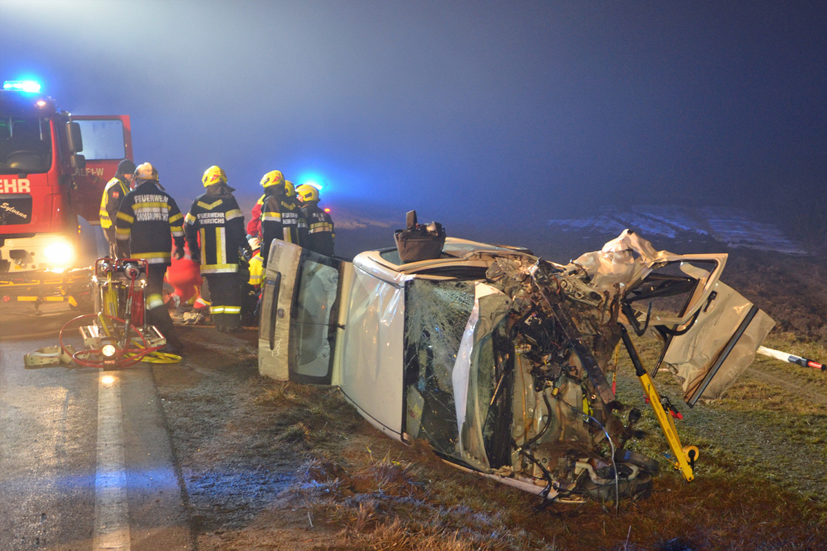 Die Ursache des Unfalls wird derzeit von der Polizei ermittelt. (Bildquelle: Bezirksfeuerwehrkommando Waidhofen an der Thaya)