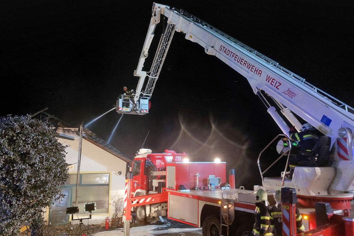Das Feuer erfasste Dach und Obergeschoss. (Bildquelle: BFV Weiz)