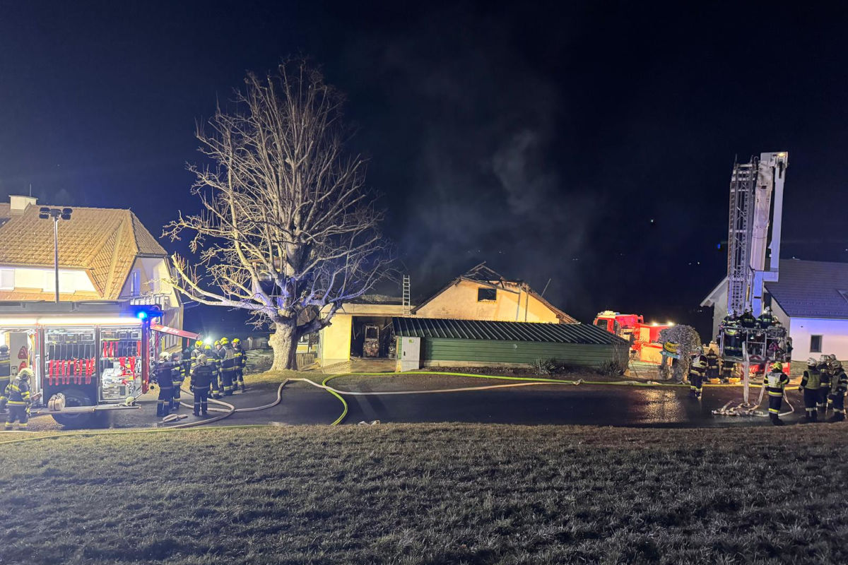 In Gschaid bei Birkfeld geriet am Samstagabend, 28. März 2026, ein Wirtschaftsgebäude in Brand. Das Feuer griff auf Dach und Obergeschoss über. Die Löscharbeiten dauerten mehrere Stunden an.