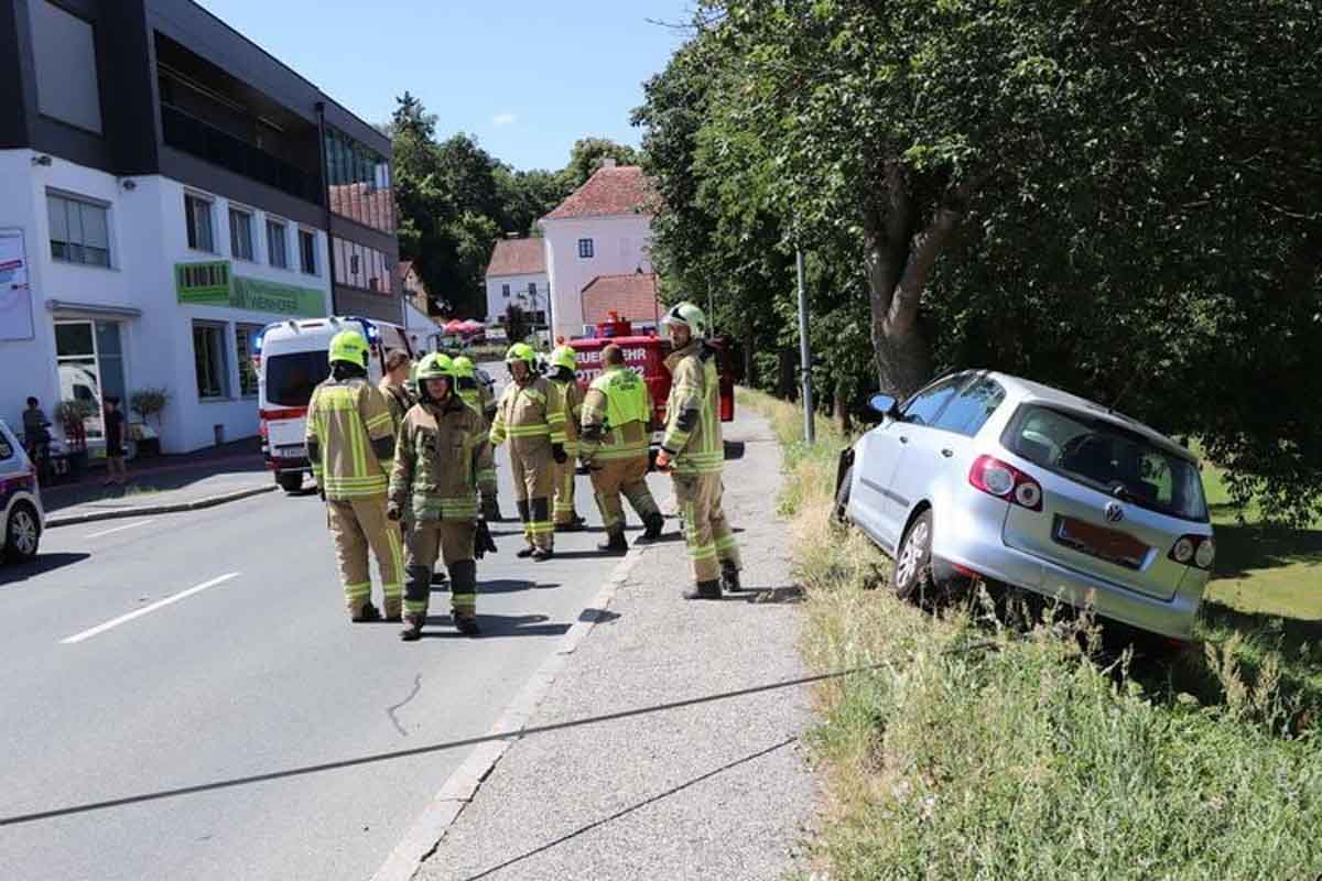 In weiterer Folge kam gestern dessen Fahrzeug rechts von der Fahrbahn ab, querte den Gehsteig und prallte in der dortigen Böschung mittig gegen einen Baum.