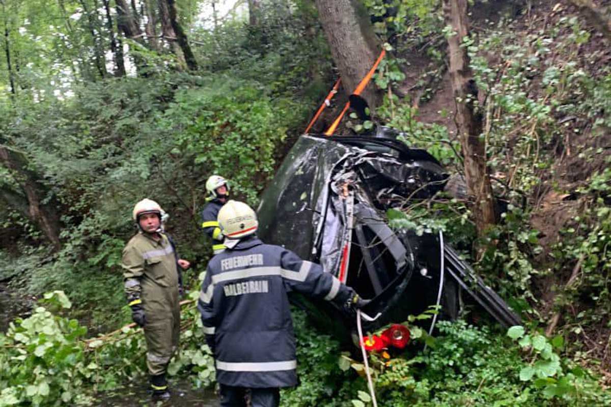 Das Fahrzeug fuhr über eine steile Böschung und kam in einem Bachbett zum Stillstand (Bildquelle: Freiwillige Feuerwehr Halbenrain)