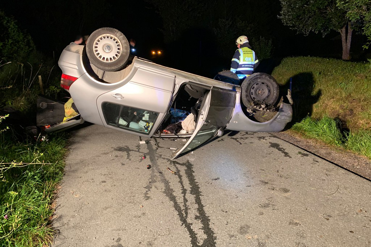 Am 17. August 2021 gegen 22:00 Uhr kam auf der Gemeindestraße zwischen Untervellach und Egg, Gd u. Bez Hermagor, ein 18-jähriger PKW-Lenker aus dem Bezirk Hermagor mit seinem PKW aufgrund nicht angepasster Fahrgeschwindigkeit in einer Linkskurve rechts von der Fahrbahn ab, prallte gegen die Böschung, wodurch der PKW ausgehoben wurde und sich überschlug.