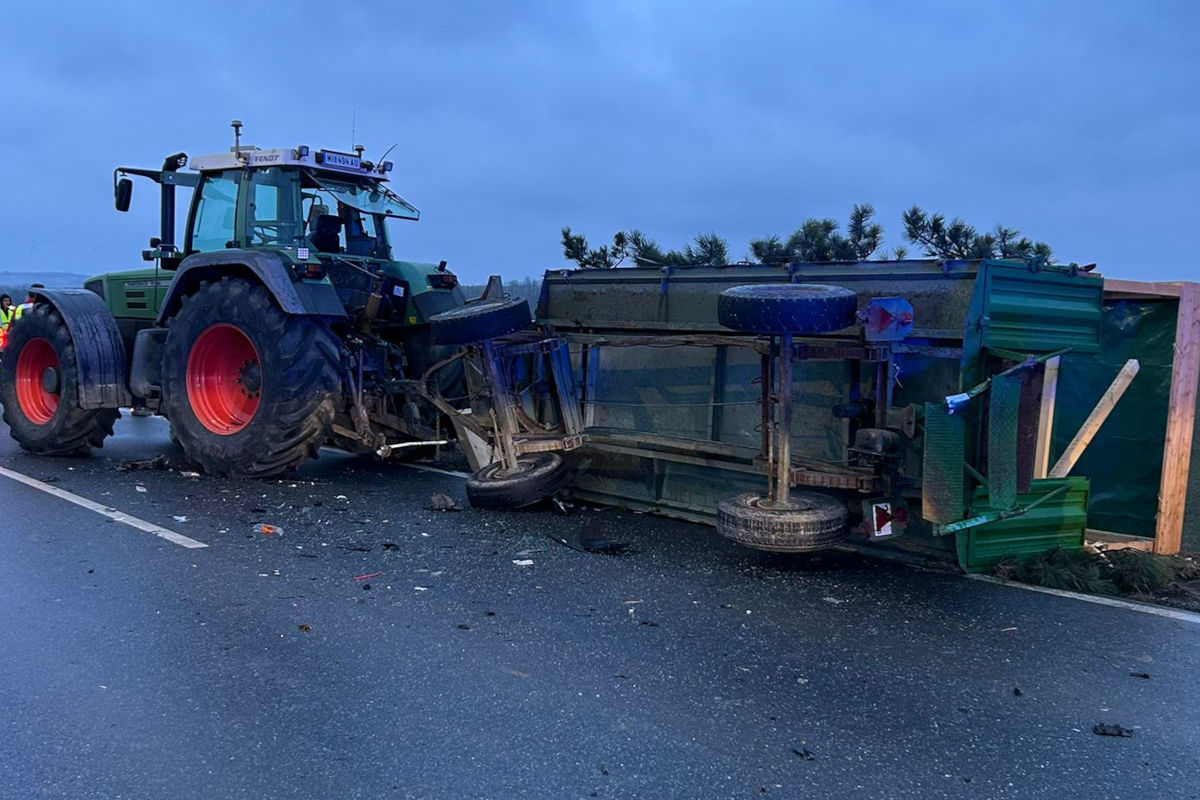 Traktor mit Anhänger und zwei Kraftfahrzeuge beteiligt waren.