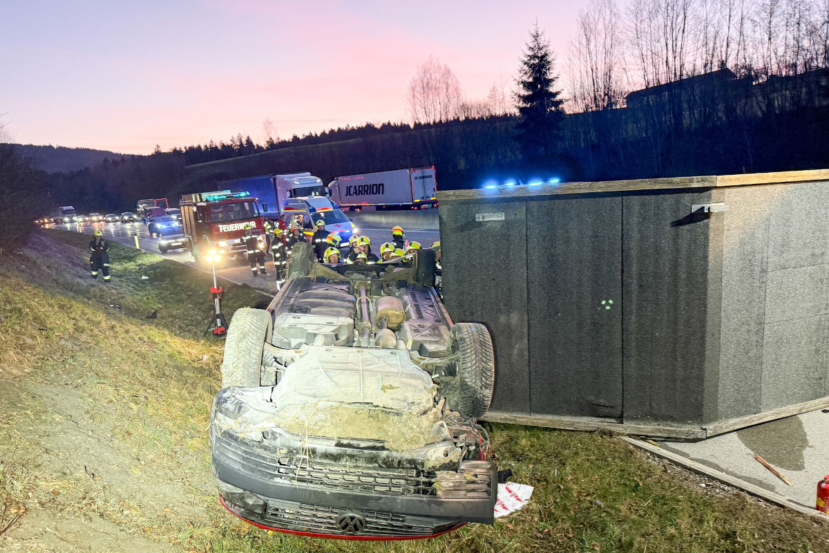 Heute Morgen, Dienstag, 7. April 2026, kam es auf der A1 bei Innerschwand zu einem Unfall. Eine 23-Jährige kollidierte beim Überholen mit einem Anhänger, der sich überschlug. Eine Beifahrerin wurde verletzt und ins Krankenhaus gebracht.