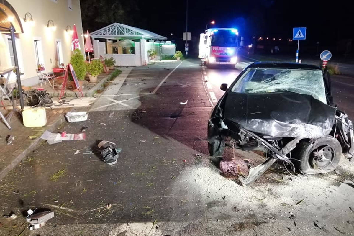 Aus bislang unbekannter Ursache verlor die Herrschaft über seinen PKW, kollidierte mit einer Mauer und schleuderte gegen eine Laterne. Durch den Unfall wurde der Motorblock samt Getriebe aus dem Fahrzeug gerissen, welche folglich einen überdachten Stehtisch sowie einen Blumentopf eines angrenzenden Gasthauses beschädigten. Durch den Unfall lösten beide Frontairbags aus.