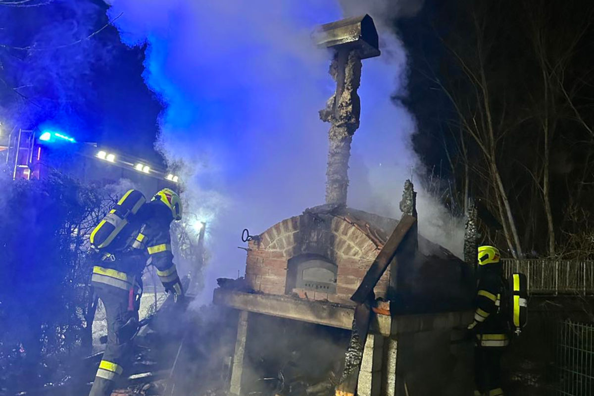 Heute, am 31. Dezember 2025, geriet in Leoben ein Outdoor-Pizzaofen in Brand. Die Feuerwehr war mit 22 Personen im Einsatz. Verletzt wurde niemand.