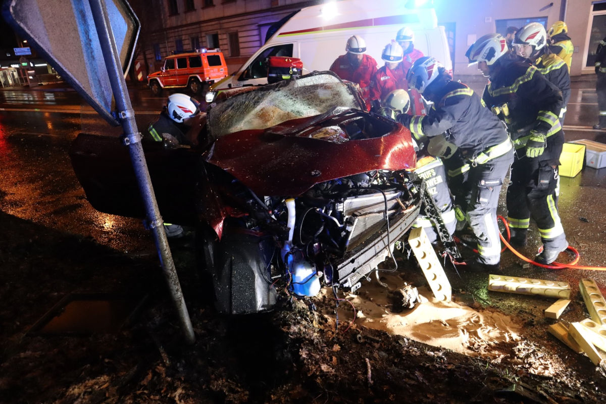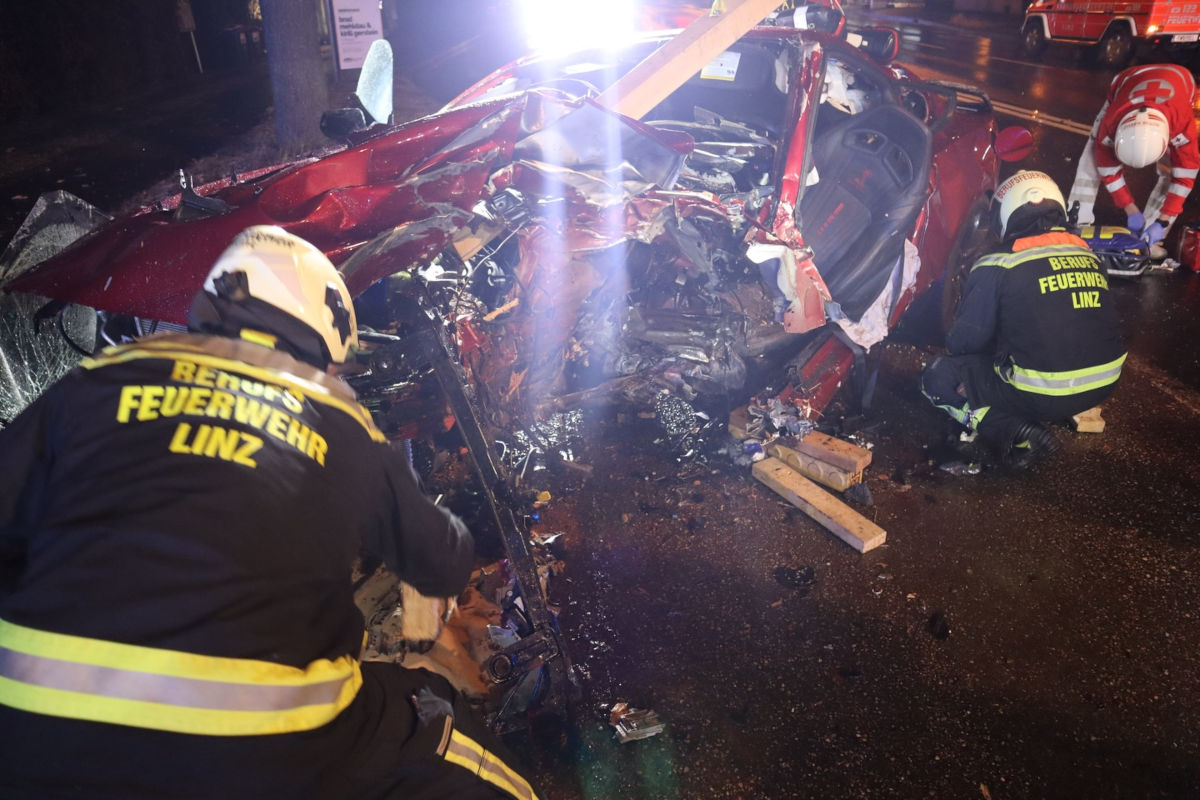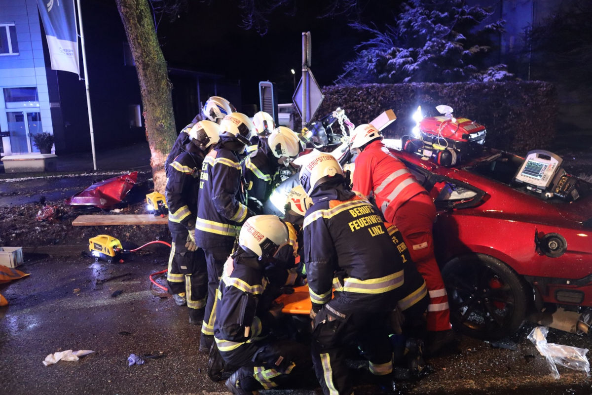 Am 15. Februar 2026 kam es in Linz zu einem Unfall. Ein 27-Jähriger verlor die Kontrolle über sein Auto und prallte gegen einen Baum. Die Beifahrerin wurde leicht verletzt, der Lenker eingeklemmt geborgen.