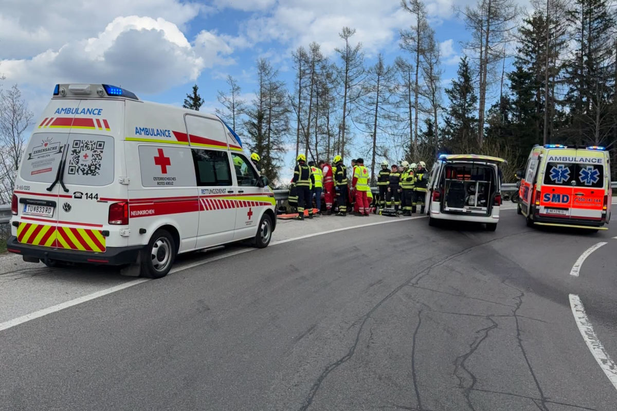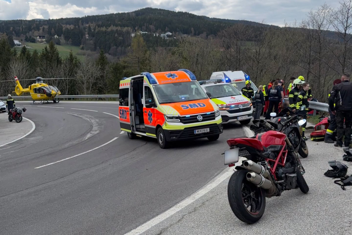 Am Freitag, 17. April 2026, kam es in Mönichkirchen zu einem Motorradunfall. Zwei Biker kollidierten in einer Gruppe, stürzten und wurden verletzt. Ein Mann wurde schwer verletzt.