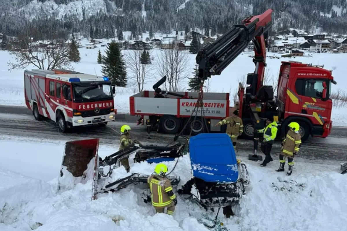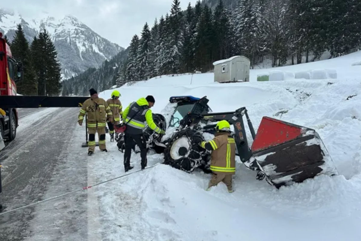 In Nesselwängle kam ein Traktor auf schneebedeckter Fahrbahn von der Straße ab und stürzte über eine Böschung. Der 44-jährige Lenker wurde schwer verletzt und ins Krankenhaus gebracht.
