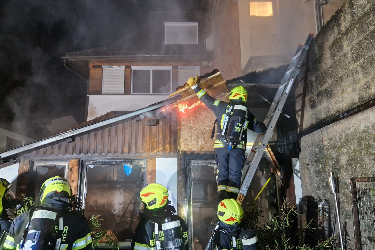 Während des ersten Löschangriffs unter Atemschutz zeigte sich jedoch, dass der betroffene Zubau mit einer aufwendigen Isolierung versehen war und die Wände teilweise doppelt verschalt waren. Dadurch gestaltete sich das Öffnen des bereits brennenden Dachstuhls deutlich schwieriger als erwartet. In weiterer Folge wurde daher die Feuerwehr Weiden zur Unterstützung und als Atemschutzreserve nachalarmiert. Insgesamt kamen vier Atemschutztrupps zum Einsatz, einige davon mehrfach.