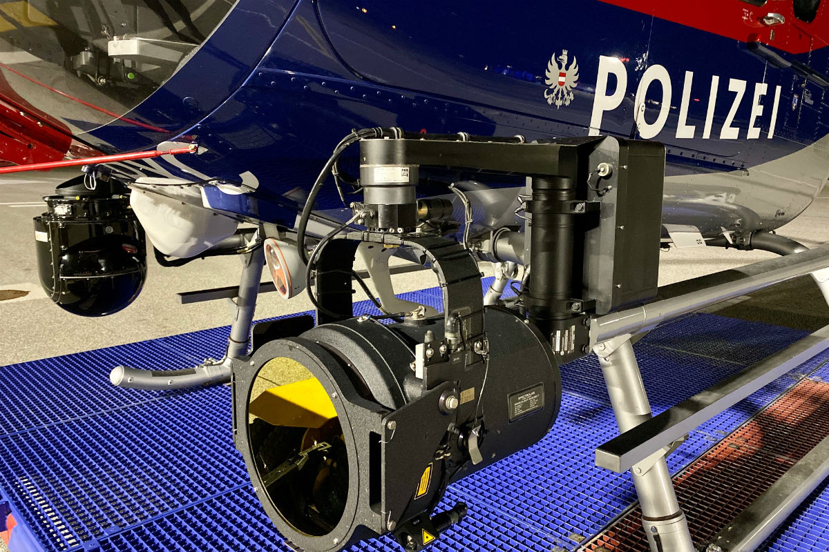 Sonderausrüstung (Suchscheinwerfer Nightsun, FLIR-Wärmebildkamera) am Hubschrauber der Flugpolizei, mit dem der Rettungseinsatz unterstützt wurde. (Bildquelle: Flugpolizei)