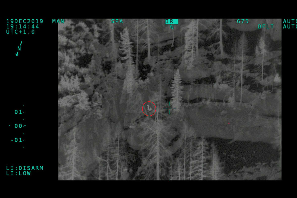 Die Besatzung des FLIR-Hubschraubers der Flugpolizei startete bei völliger Dunkelheit vom Flughafen Salzburg aus. Die Piloten konnten mit den am Helm montierten Restlichtverstärkerbrillen (NVG) bereits wenige Minuten nach Eintreffen am Einsatzort Lichtzeichen wahrnehmen. Mittels der Wärmebildkamera konnte der FLIR-Operator aus sicherer Entfernung tatsächlich beide Alpinisten in steilem Gelände feststellen.