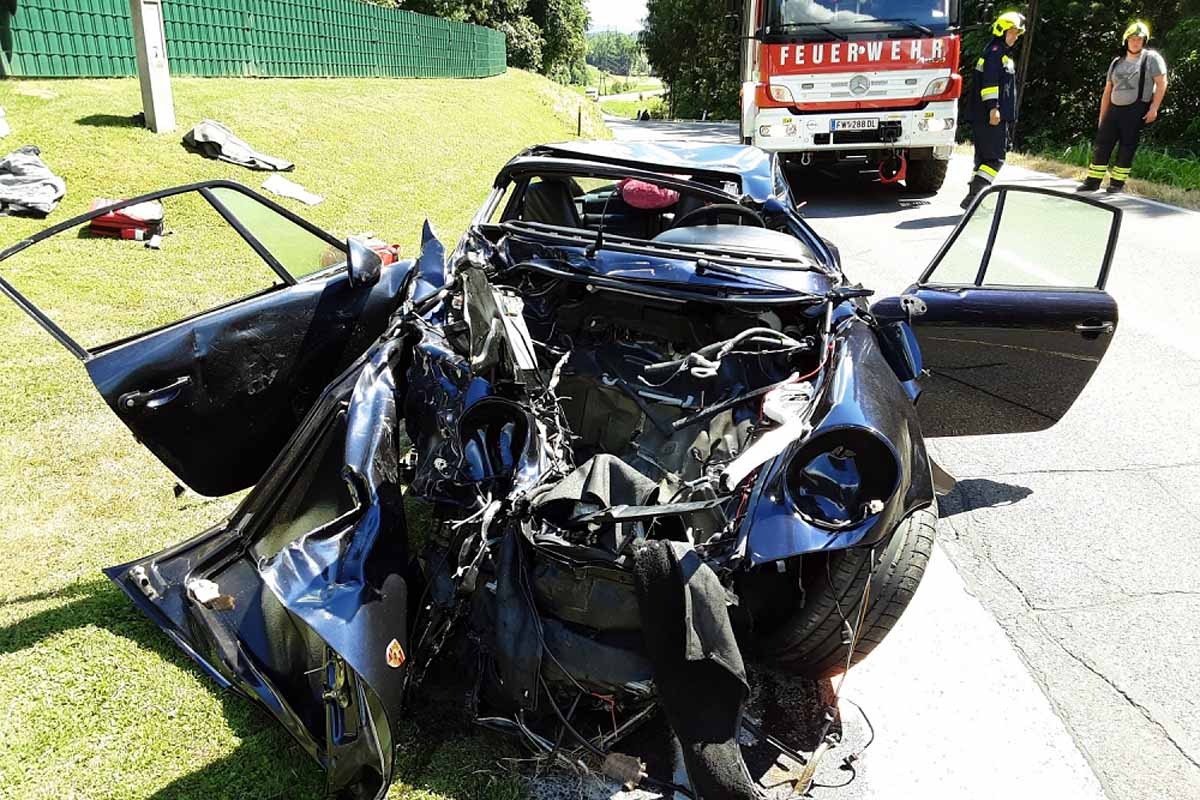 Ein Sportwagen war mit einem Kleinbus zusammenstoßen (Bildquelle: FF Preding)