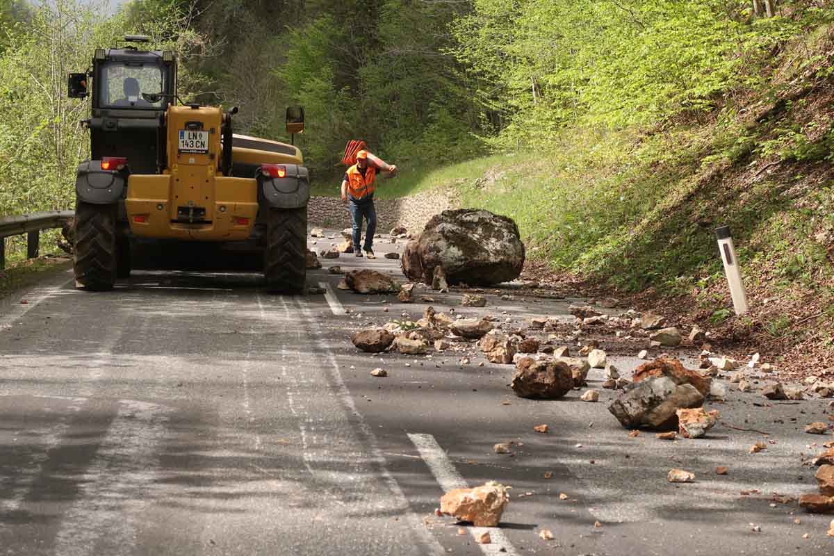 Gestern kurz nach 12.15 Uhr verständigten Verkehrsteilnehmer den Bürgermeister von Radmer über den Felssturz auf der L127 (km 3,650).