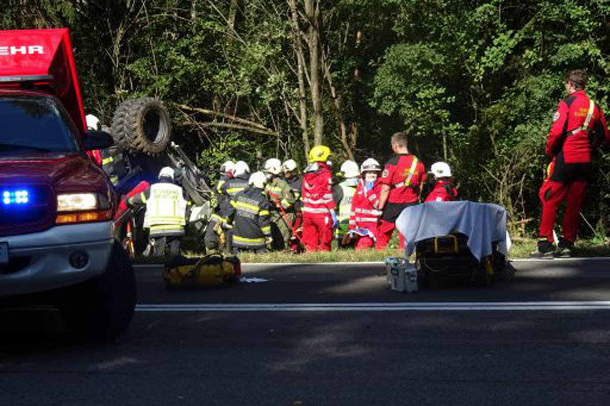 Mittwochvormittag, 1. September 2021, kam ein 27-Jähriger mit einem Radbagger von der Fahrbahn ab. Der Mann erlitt Verletzungen unbestimmten Grades.
