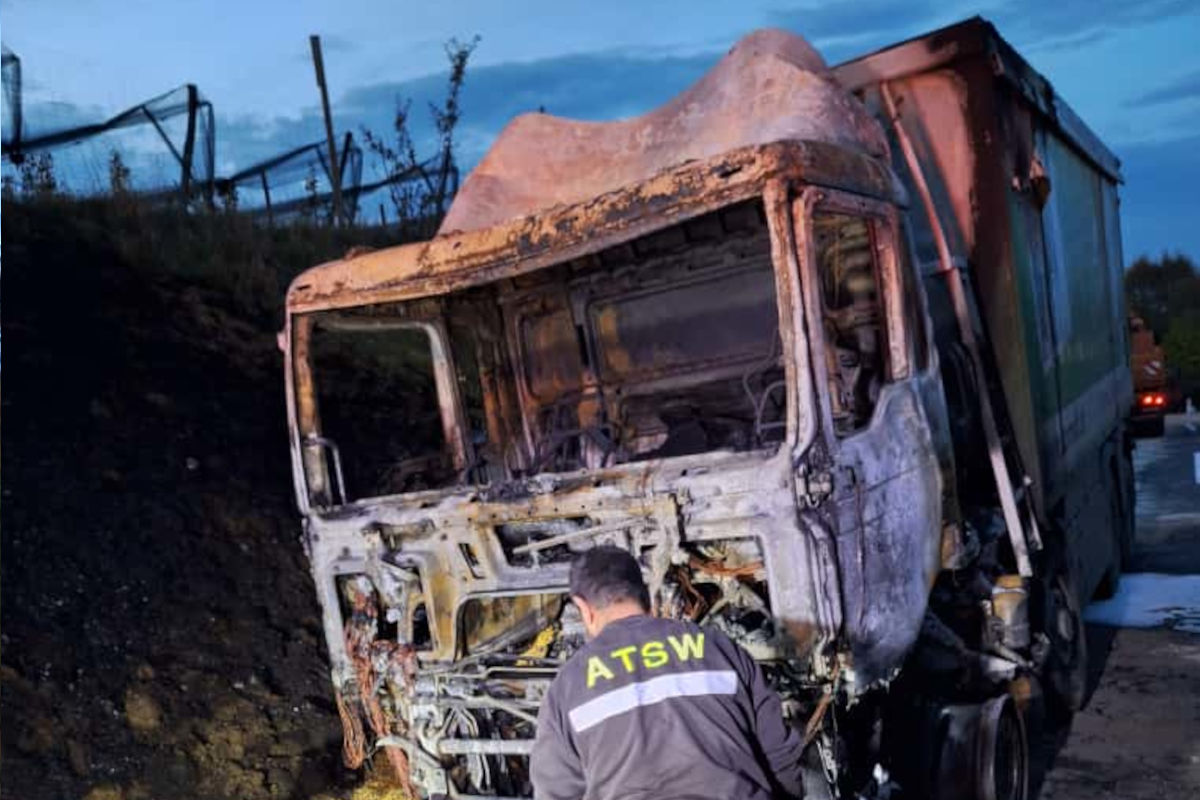 Gestern Nachmittag, 22. Oktober 2025, geriet ein mit Mais beladener Lkw in Brand. Der Lenker wurde leicht verletzt. Es entstand hoher Sachschaden.