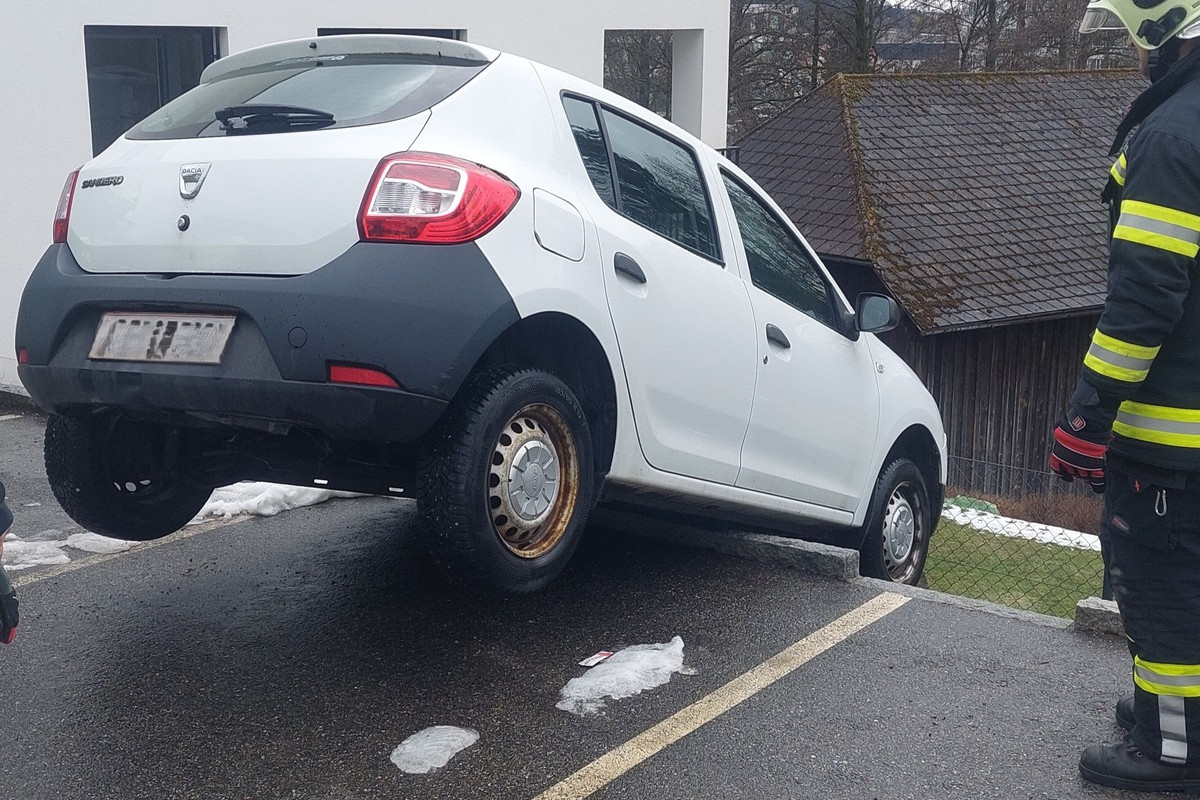 Die Feuerwehr sicherte den Pkw auf dem Parkplatz. (Bildquelle: FF Rohrbach im Mühlkreis)