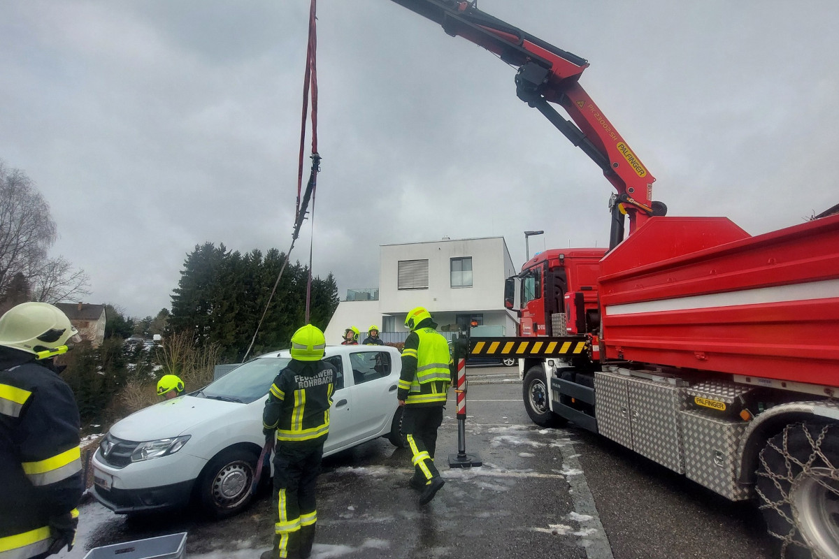 Am 23. Februar 2026 wurde die Feuerwehr in Rohrbach zu einer Fahrzeugbergung gerufen. Ein Pkw drohte auf einem Parkplatz über eine Böschung zu stürzen.