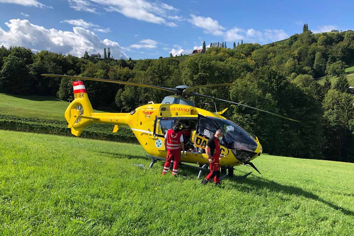In Eckberg gerät eine landwirtschaftliche Maschine im Weingarten ins Rutschen und verletzt zwei Erntehelfer (Bildquelle: Rotes Kreuz Leibnitz)