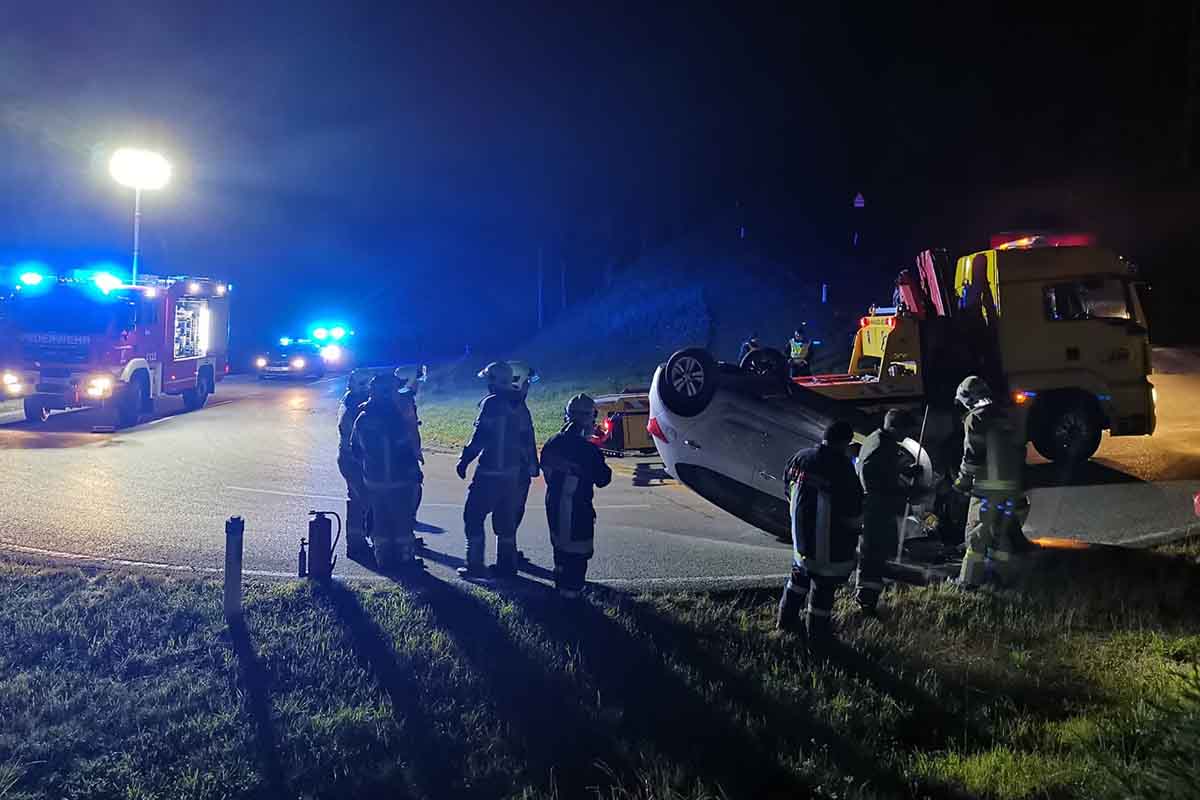 Durch den Aufprall überschlug sich der Pkw und kam anschließend auf dem Dach zu liegen. Die Lenkerin konnte sich selbstständig aus dem Pkw befreien.