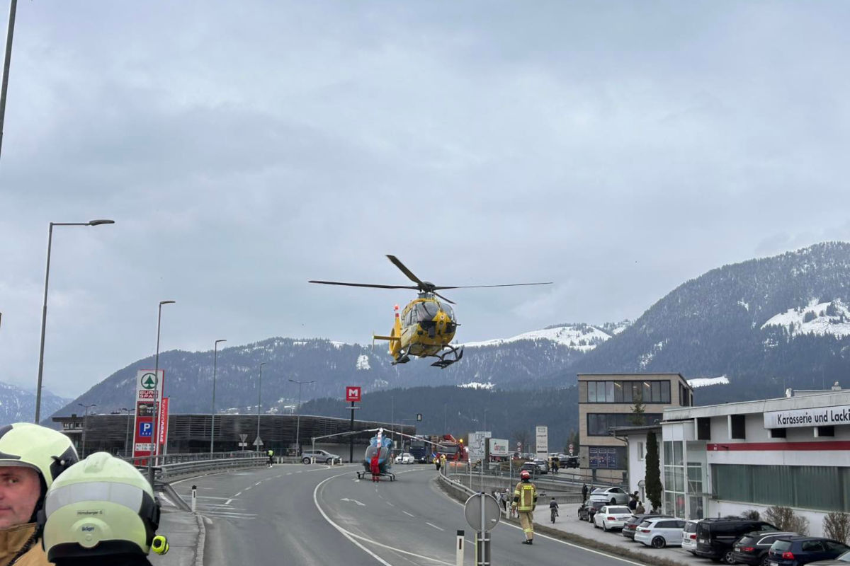 Rettungshubschrauber landet nahe der Unfallstelle (Bildquelle: FF St. Johann in Tirol)