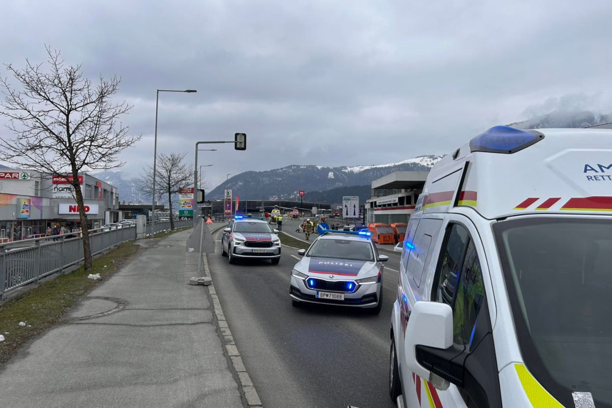 Die Straße blieb während der Bergungsarbeiten gesperrt. (Bildquelle: FF St. Johann in Tirol)