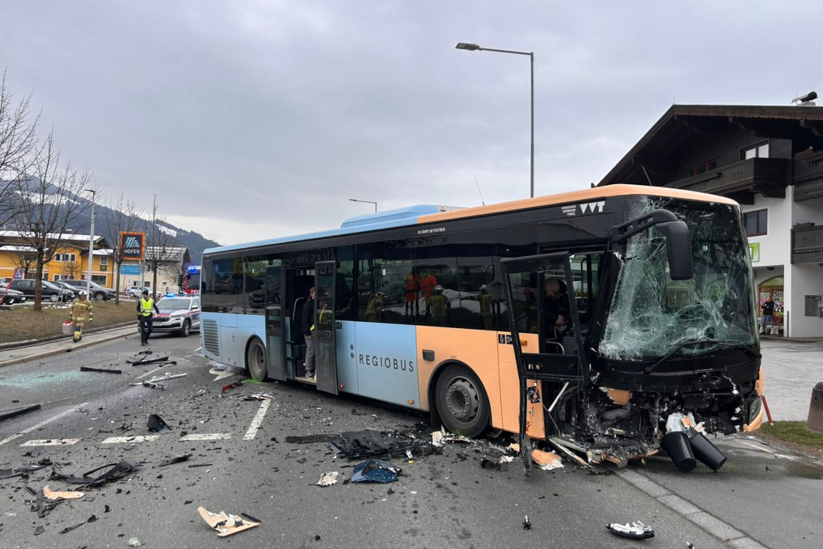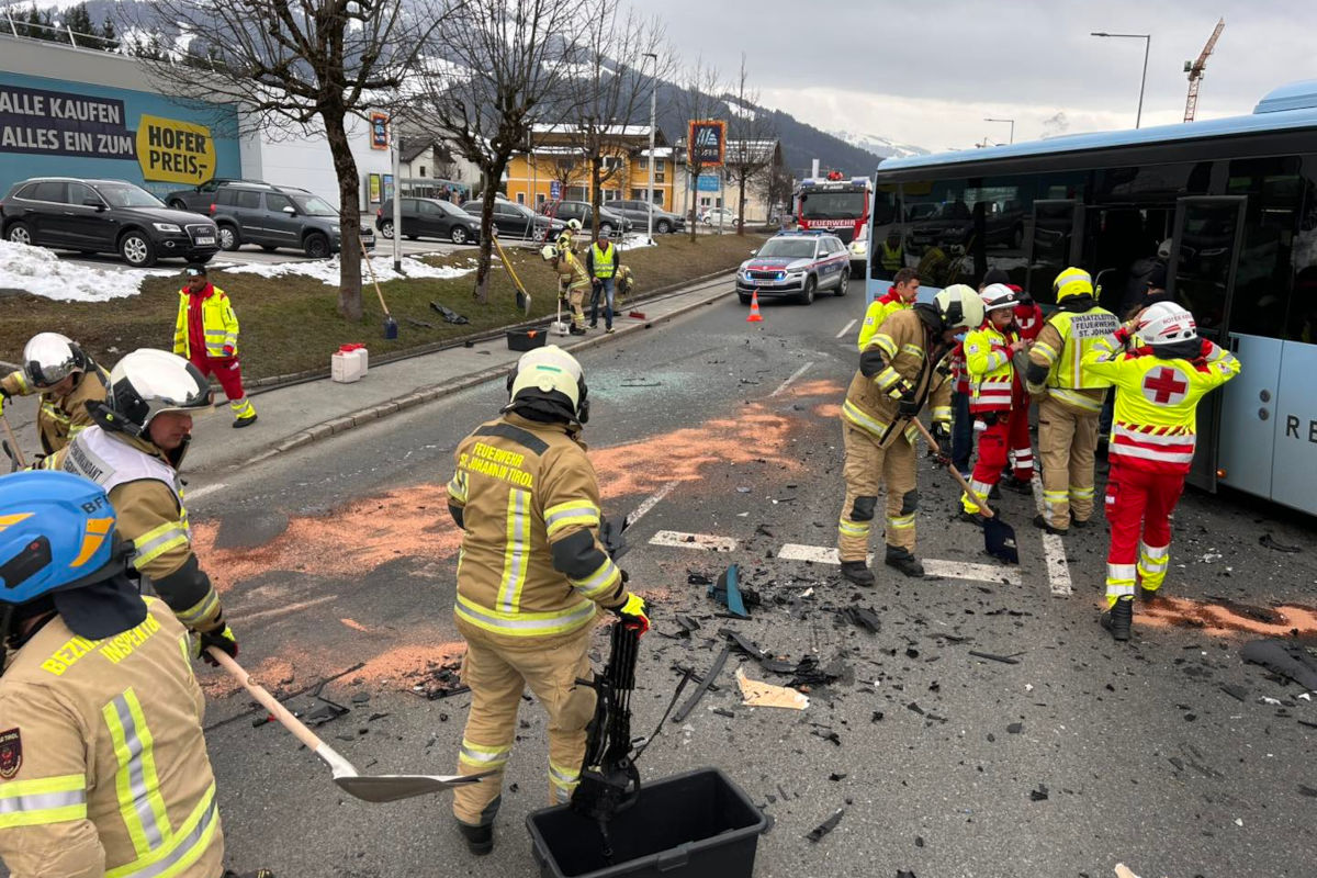 Der Pkw kollidierte frontal mit einem Linienbus. (Bildquelle: FF St. Johann in Tirol)