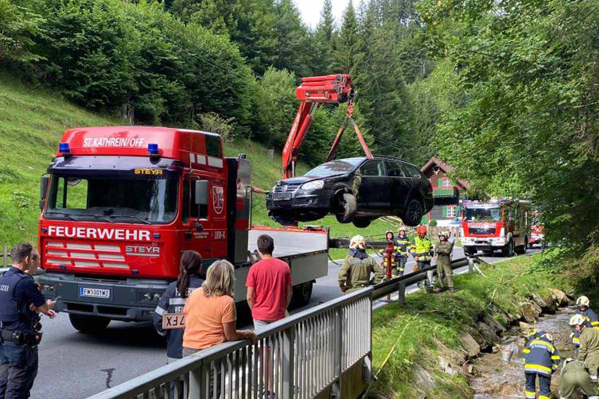 Es waren zwei Feuerwehren mit 27 Kräften im Einsatz. Der verunfallte Pkw wurde mit dem Kranwagen der Feuerwehr St. Kathrein am Offenegg geborgen.