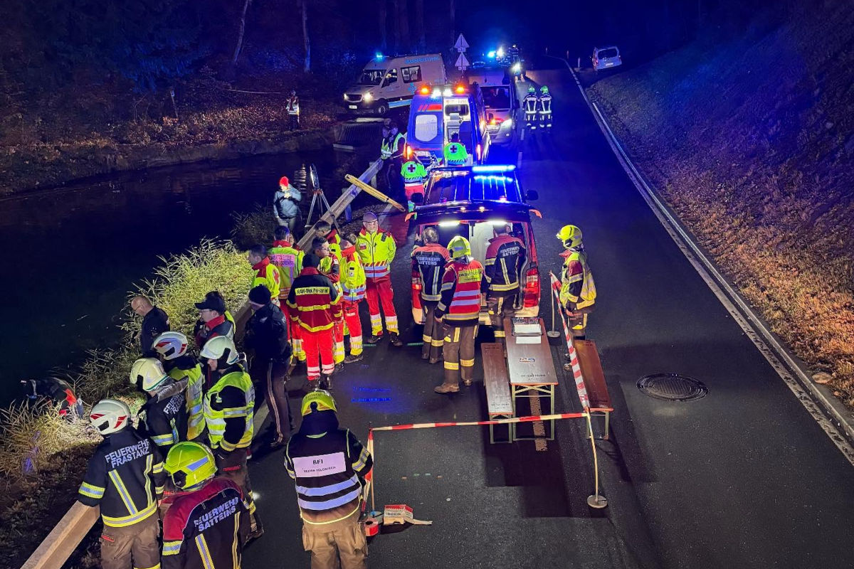 Zwei Taucher konnten gegen 00:57 Uhr eine männliche Person aus dem versunkenen Fahrzeug bergen und ans Ufer verbringen. Die dort sofort eingeleiteten Reanimationsmaßnahmen blieben erfolglos.