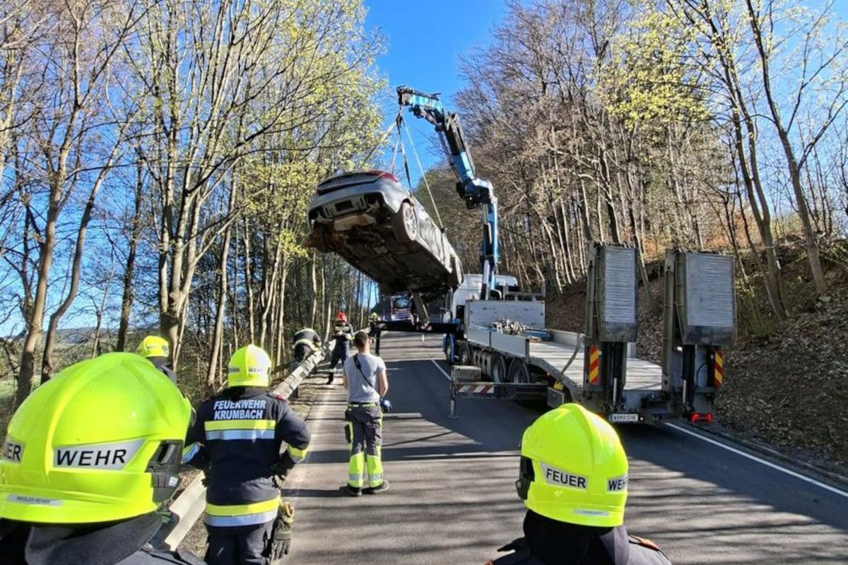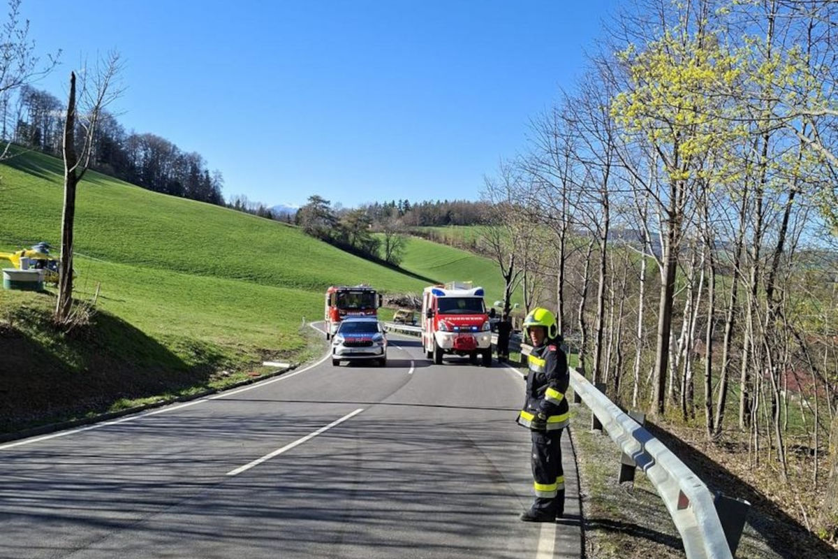 Am Dienstag, 7. April 2026, kam es bei Krumbach zu einem Unfall. Ein Pkw kam von der Fahrbahn ab und prallte gegen einen Baum. Der Lenker wurde leicht verletzt, Feuerwehr und Rettung standen im Einsatz.
